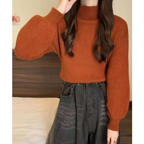 韓国風リブニットトップスハイネックニット