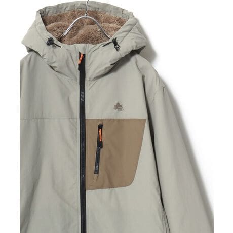 軽くて丈夫なナイロン素材を使用、動きやすく着心地の良い着用感です。フード裏はシャギーボアで身頃裏はフリース素材を使った保温性があり暖かく、これからの時期に活躍するアウターです。