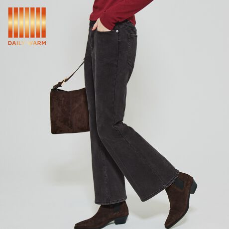 ヒールブーツやショート丈アウターと合わせて、すっきり大人な印象に。