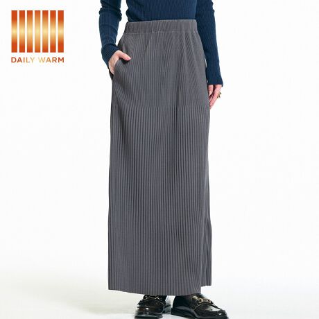 裏起毛で暖かく、ランダムリブが女性らしいロングIラインスカート