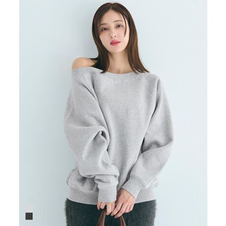 肩をほどよく見せるオフショルデザインで、ラフさの中に女性らしさをプラス。