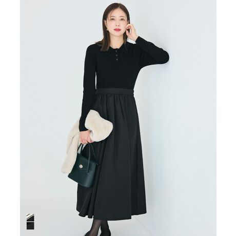 きちんと感と女性らしさを両立したポロニットドッキングワンピース