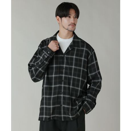西脇コットンレーヨンオンブレチェックオープンカラー長袖シャツ