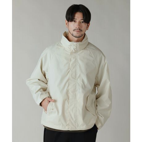 ゆとりのある身幅と肩回りを動かしやすいラグランスリーブデザインで、インナーにニットやカットソーも着込んでもごわつきません。首回りは収納可能なフード付きの2wayネックデザインを採用しました。普段はネックに収納した状態ですっきりとしたスタンドネックジャケットに、雨天時にはフードを出すことでマウンテンパーカーのような実用性を発揮します。フロントは隙間からの風の入り込みを防いでくれる比翼仕立て。ゴム入りの袖口にはマジックテープも配し、調節が可能なデザインとなっております。裾にはドローコードを取り付け、絞り具合で裾の広がりを軽減して気密性を高めることができるだけでなく、丈感の変化で様々なシルエットを楽しめる仕様にしました。