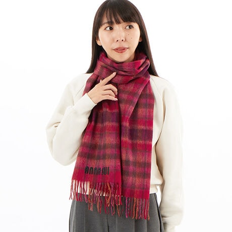 NYコレクションに登場したチェック柄をオマージュしたマフラーです。色をあてたロゴ刺しゅうがアクセント。光沢のある毛100%素材を使用しています。使いやすく、アクセントとして取り入れやすいマフラータイプ。首元をすっきりさせながら防寒したい方にぴったりで、かさばらずにお使いいただけます。