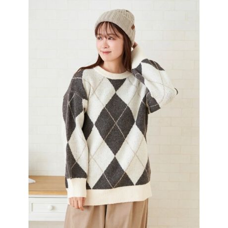 [型番:25410688400]クラシカルなアーガイル柄が目を引くニットプルオーバー。ゆったりとしたシルエットでリラックス感があり、トラッドな雰囲気を楽しめる一枚です。シャツをレイヤードして上品に、デニムでカジュアルにと着こなし自在。秋冬のスタイリングを華やかに彩る万能アイテムです。Hare no hi/ハレノヒ