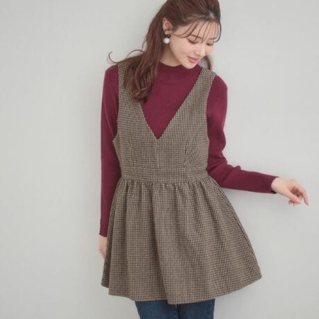 インナーにリブニットやボトムにパンツをレイヤードするスタイリングがおすすめ◎