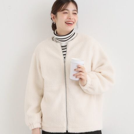 羽織るだけで着映えするノーカラーで着回しやすいボアジャケット。