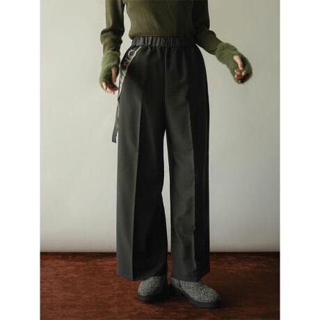 さりげないテープ刺繍がアクセントになるセンタープレススラックスパンツ。