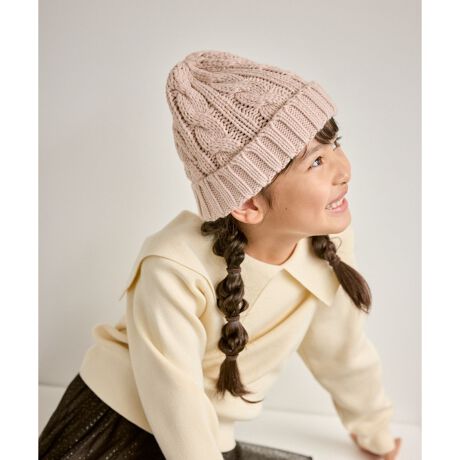 ・UNISEXで使えるケーブルニット帽。