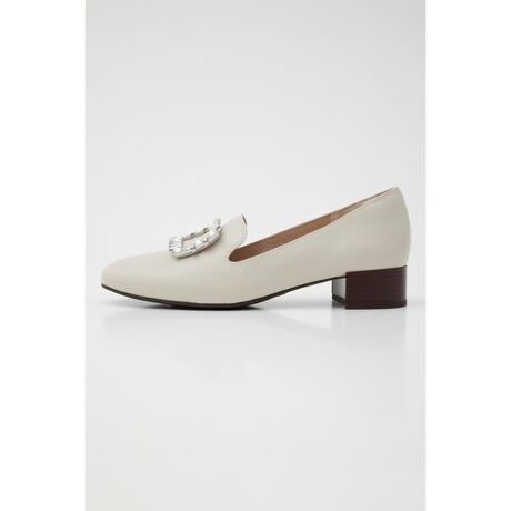 [型番:350HS148-8140]モノトーンStyleにも合わせやすい、幾何学なデザインバックルが新鮮なドレスシューズ。足あたり滑らかでソフトな履き心地のシープレザーに、かかと部分にもクッション入りで脱げにくいのもうれしいポイント。スタイリングを選ばずシーズンレスで履ける、大人かわいいデザインローファーです。※バックルの引っ掛けやストーン装飾への衝撃等にご注意ください。