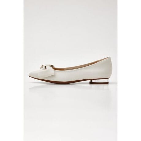 [型番:350HS112-2060]キュートにもクールにもスタイリングの幅広く着まわせる。甘くなりすぎないワントーンカラーで仕上げた、知的な印象のBIGリボンカッターパンプス。足あたりも柔らかなソフトレザーかつ柔軟性とグリップ力も高く、クールな雰囲気のポインテッドトゥはバレエシューズよりカジュアル見えしにくく、さり気ないシルバーヒールがスタイリッシュな印象にみせてくれます。