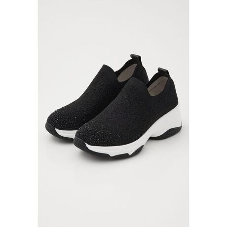 [型番:350IA149-9145]【STACCATO定番スリッポン】表情感と凹凸感のある立体的なMIXニット地に、つま先部分にはグラデーション風に大小のオーロラストーンを装飾。フィット感のあるハイバンプデザイン&安定感ある程よい高さのスニーカーソールは、ボリューム過ぎないのに脚長効果も期待大。シーズンレスでデイリーユースに大活躍してくれます。