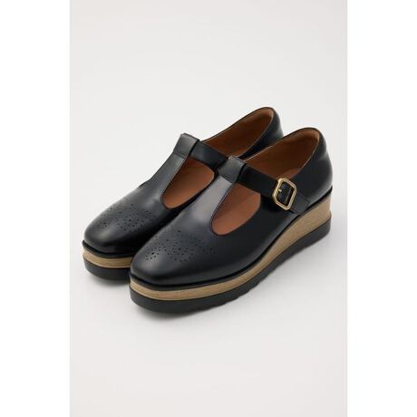 [型番:350IA148-8130]≪STACCATO定番≫シーズンレスで大活躍してくれる、足元盛れる大人気の厚底シューズに待望の黒ソールが新登場。ウッド調ウェッジ×ブラックのシャークソールがモードで落ち着いた印象に。ブリティッシュテイストなTストラップデザインが甲部分を支えてくれ安定感もあり、ちらりと覗くカラーソックス合わせもおすすめです。フェミニンなコーディネートからマニッシュなスタイルにも相性抜群です。