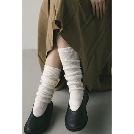 [型番:500IAA56-4351]柔らかな糸を使用したリブハイソックス。単品ではもちろん、タイツやソックスとレイヤードして履くとよりトレンド感のあるスタイリングを楽しめます。