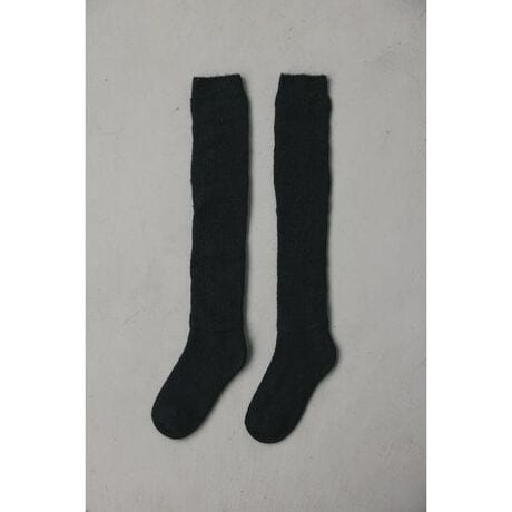[型番:500IAA56-4351]柔らかな糸を使用したリブハイソックス。単品ではもちろん、タイツやソックスとレイヤードして履くとよりトレンド感のあるスタイリングを楽しめます。