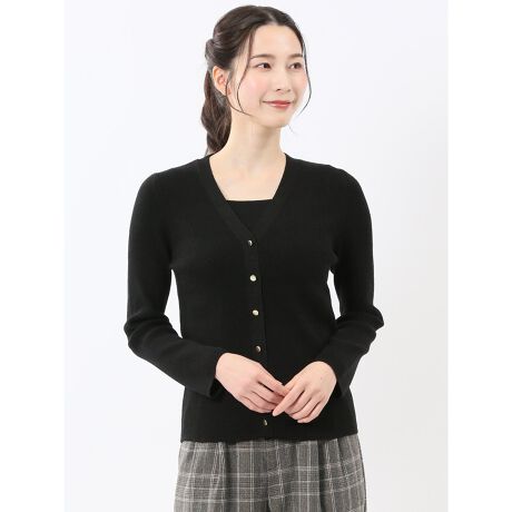 ハンドウォッシャブル ラメリブ Vネック ニットカーディガン
