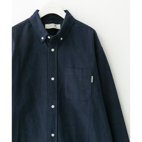 襟元はクラシックなボタンダウン仕様で、カジュアルな表情を保ちつつもきちんと感を損なわないバランス。前立てはボタン開閉で着脱が容易、胸ポケットやカフスの仕様などベーシックなディテールを抑えつつ、シャギー加工が全体の印象を豊かにしています。シルエットはややリラックスめに設計され、単体でもジャケットやニットの下でもレイヤードしやすい汎用性の高い一枚です。