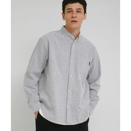 襟元はクラシックなボタンダウン仕様で、カジュアルな表情を保ちつつもきちんと感を損なわないバランス。前立てはボタン開閉で着脱が容易、胸ポケットやカフスの仕様などベーシックなディテールを抑えつつ、シャギー加工が全体の印象を豊かにしています。シルエットはややリラックスめに設計され、単体でもジャケットやニットの下でもレイヤードしやすい汎用性の高い一枚です。