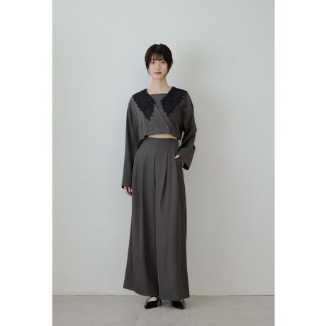 トップスは大ぶりのレースカラーが視線を奪うデザイン。