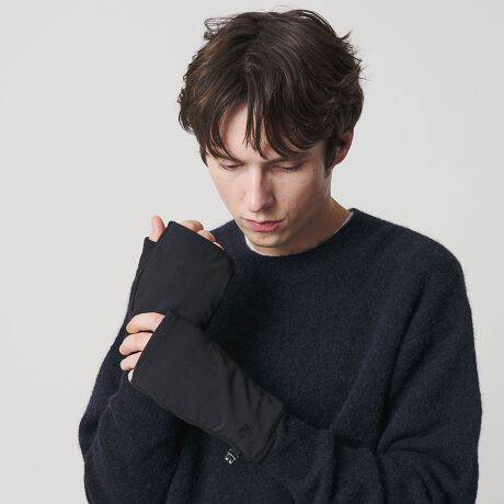 温もりを感じるポリエステル製のフリースをベースに、甲と親指部分をドライでマットなナイロン混生地で切り替え。