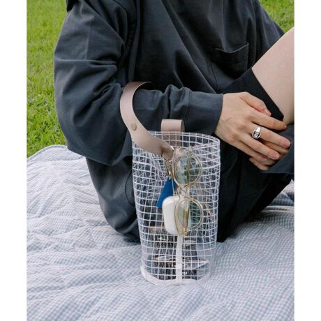 クリアメッシュタイプのワインバッグは、筒状でワインボトルなどの持ち運びに最適。