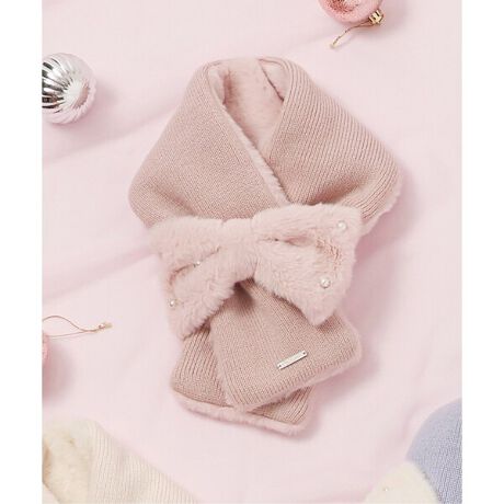[型番:V571025]apres les cours(アプレレクール)のあったか小物「リボンファーマフラー」は、どんなウェアとも相性抜群!おしゃれなコーデに仕上げてくれるアイテム*#apreslescours【サイズ情報】100-120:丈73 幅11120-140:丈82 幅13