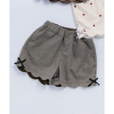 apres les cours(アプレレクール)のパンツ「【リンク】サイドリボンスカラップショートパンツ_RP」は、ナチュラルなスタイルにさりげなくデザインをプラスしたおしゃれアイテム*