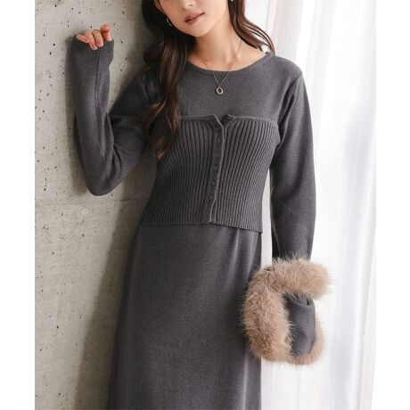 低身長さんがバランスよく着こなせる、ニットビスチェ×ワンピースの2点セット。