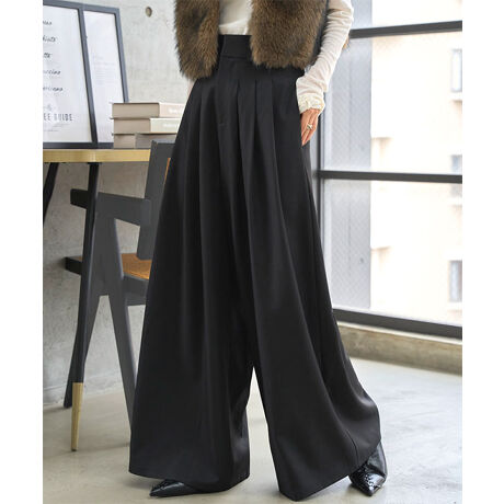 インパクトのあるボリューム感が目を惹く大人のスーパーワイドパンツ。