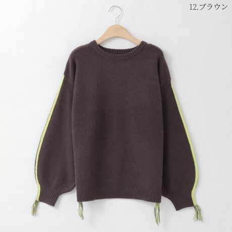 フリンジアクセントデザインニットプルオーバー[99942078]macaron