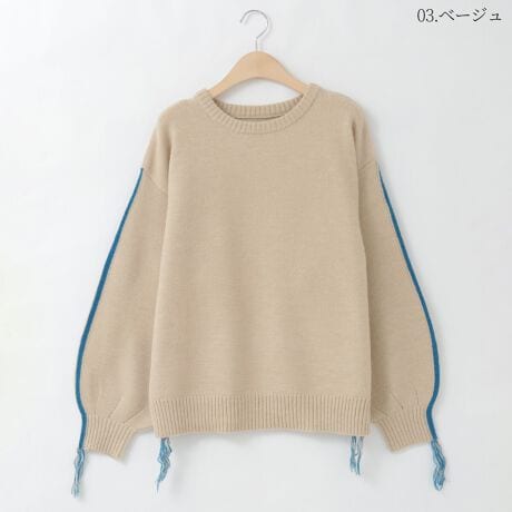 配色ラインの先にはニュアンスあるフリンジディテールをプラス♪