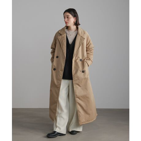 軽やかなのにしっかりと暖かい、中綿入りのナイロンロングコート。羽織った瞬間にふわりと包み込まれるような軽さで、冬の外出も心地よく。