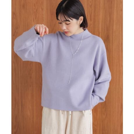 袖バルーンのふんわり感が腕をふんわり包み、視線を外してすっきり見せます。モックネックは首まわりをやさしく温め、コンパクトな襟元で上品な印象に。ジャケットやスカートとも相性よく、カジュアルにもきれいめにも使える万能アイテムです。
