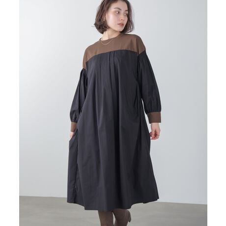 一枚で着映えが完成する、大人のための上品ワンピース。異素材の組み合わせが程よいメリハリを生み、きちんと感とリラックス感を両立します。忙しい毎日でも、さっと着るだけで洗練された印象に。ゆとりのあるシルエットで体のラインを拾いにくく、自然に体型をカバーします。袖ぐりに寄せたギャザーが、さりげない可愛さを添えるアクセント。切り替え位置を高めに設定し、脚をすらりと長く見せてくれるのも嬉しいポイントです。