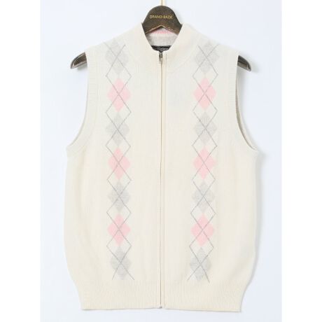 アーガイル柄がお洒落な、前開きのニットベストです。スマートな印象のスタンドカラーと脱ぎ着がしやすいフルジップがポイント。気温に合わせた温度調節もスムーズなので、インナーとアウターの中間着として肌寒い季節の防寒対策にマストなアイテムです。