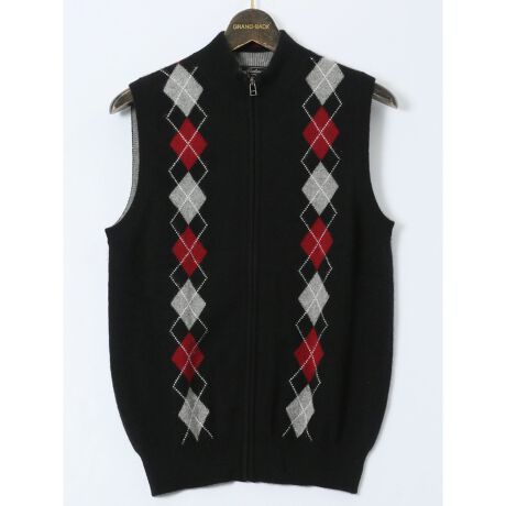 【大きいサイズ】グランバック カシミヤ100% フルジップ ニットベスト