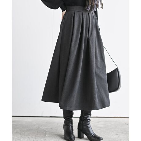 幅広のボックスプリーツがふわっとした女性らしいシルエットを描くスカート。