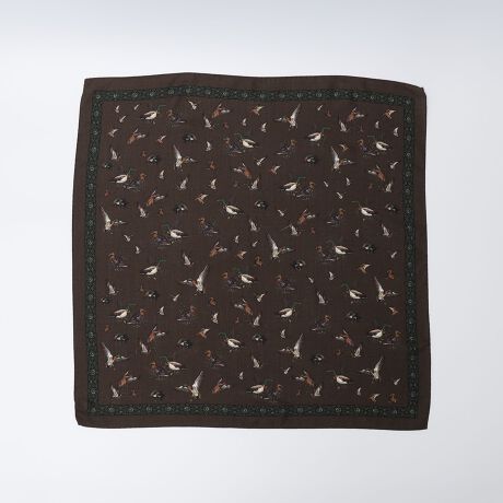 全体に鳥のプリントが施されたスカーフ。