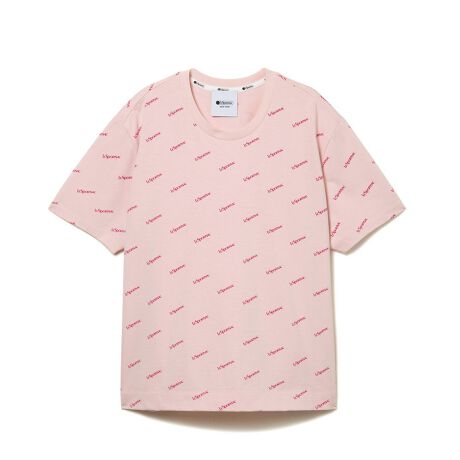 ブランドロゴを散りばめた総柄プリントのTシャツ。