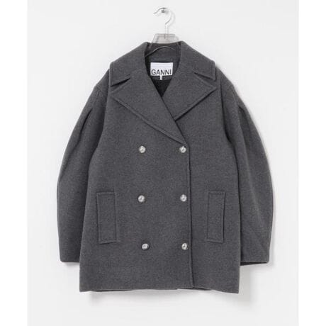 クラシカルなノッチドラペルにゴールドのボタンがアクセントとなったオーバーサイズシルエットのPコート。