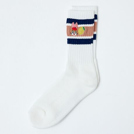 うさぎのクッピーちゃんが刺繍されたライン靴下×1