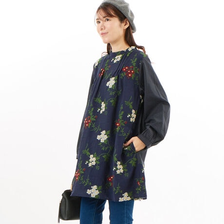 レーヨンナイロンアクリルトレイリングブルームカットジャカード+コットンツイルチュニックブラウス