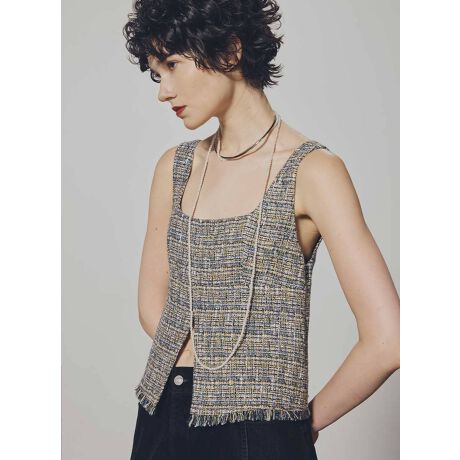 ツイードフロントスリットビスチェ