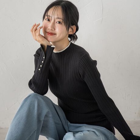 ランダムなピッチのリブ編地で、ベーシックでもおしゃれに着こなせます。