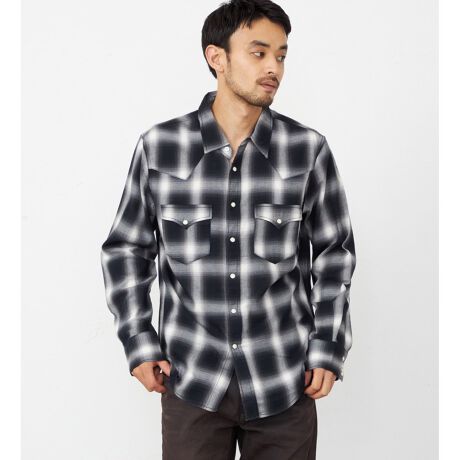 綾立ちの美しい30番手オンブレーチェックツイル素材を使用した、ウエスタンシャツデザインの一着。落ち着いた配色と滑らかなツイル生地が、上品かつ程よいカジュアル感を演出します。