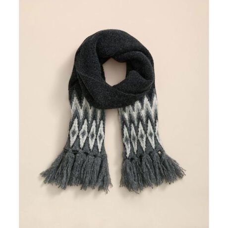 グレーベースのシックなカラーリングで編み上げられた伝統的なフェアアイル柄のマフラー