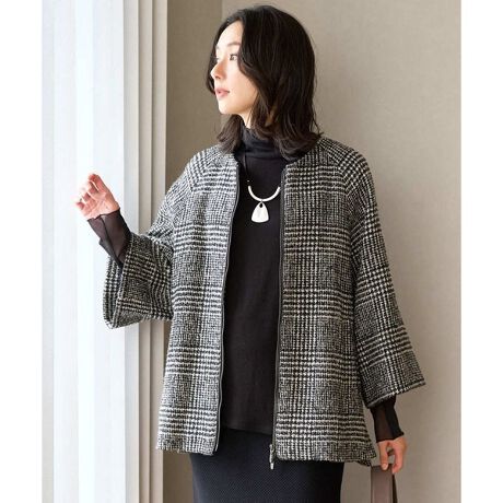 羽織るだけでサマになる、上品な印象のツイード素材ポンチョジャケット