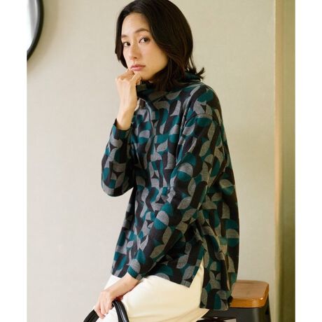 ・幾何柄の起毛素材のジャガードは大胆な柄と色使いがインパクトのあるプルオーバー