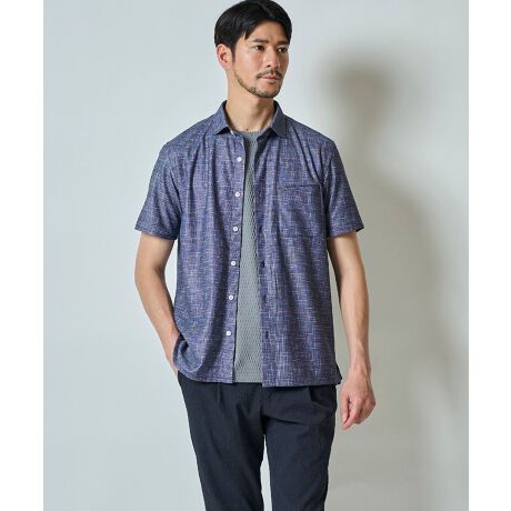 サラッとした肌触りのかすれメッシュ柄半袖ドライシャツ